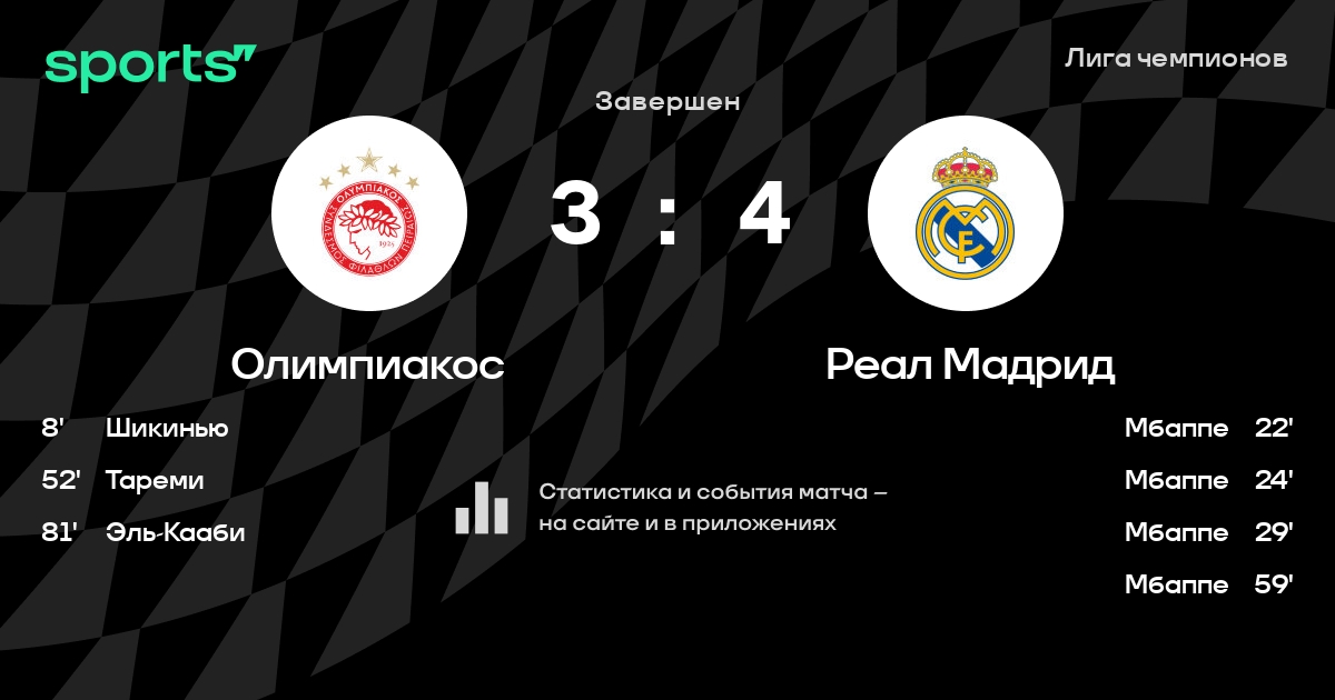 Лига чемпионов: шансы «Олимпиакоса» и «Реала» на победу в матче 5-го тура ЛЧ