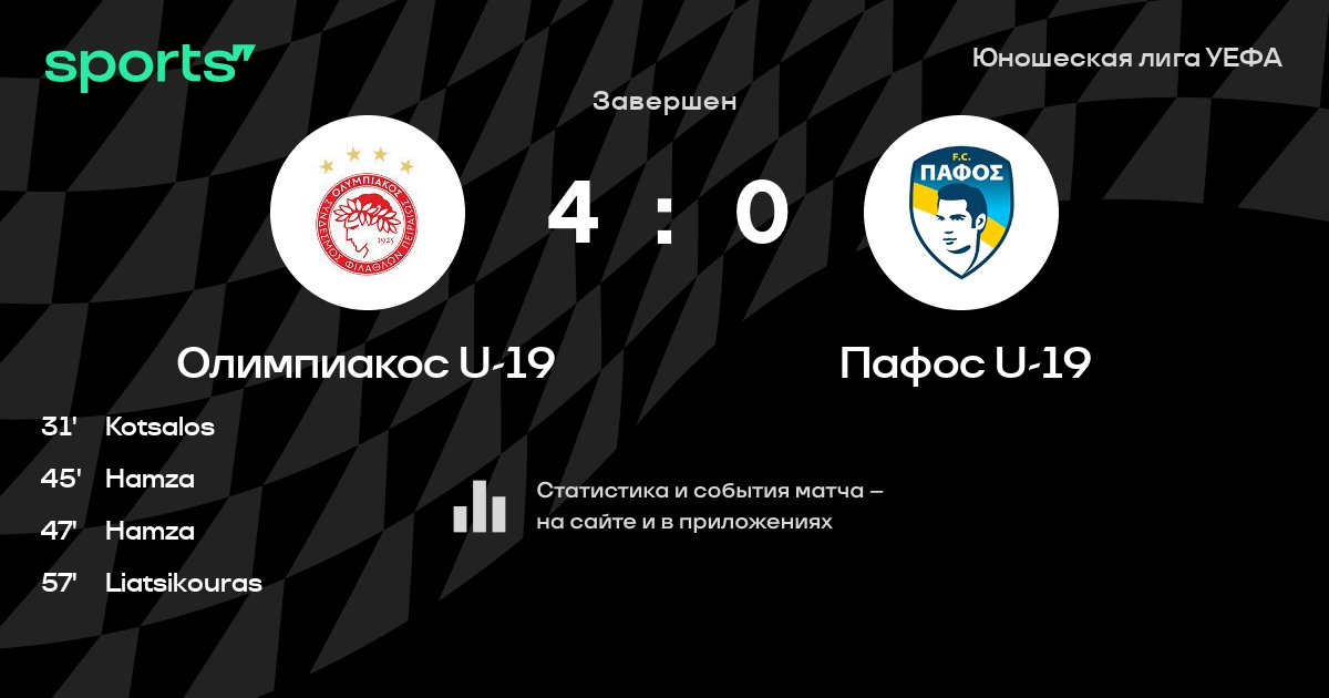 Трансляция Олимпиакос U-19 - Пафос U-19