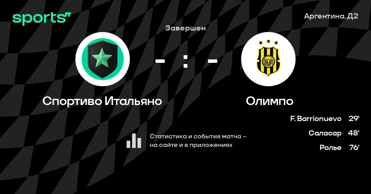 Tombolini - Моссет, Вильянуэва, Сантин, Касаис - Брум, Ricci, Barrionuevo, Вега - Delorte, Саласар