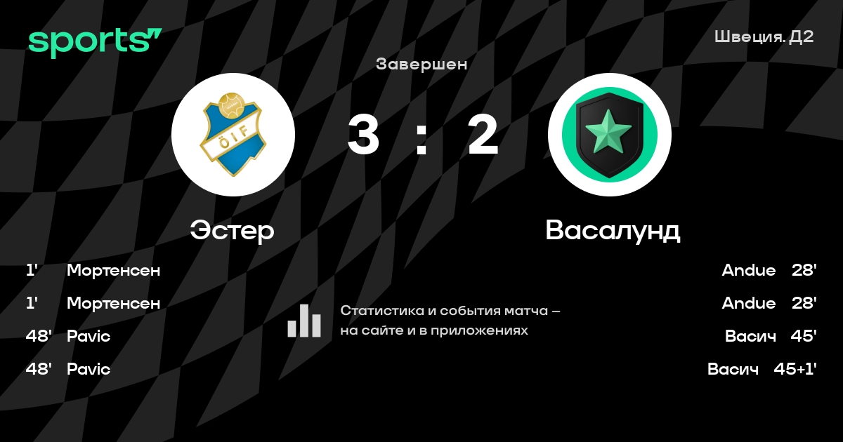 Результат прошлой игры в турнире «Швеция. Д2»: Браге – Эстер 2:2. После 24 туров Эстер набирает 32 очков и занимает 8 место в турнире. Лучший бомбардир команды – Николас Мортенсен: он забил 4 в 13 матчах. Эстер не проигрывает в 6 последних матчах в рамках турнира «Швеция. Д2». В 6 последних матчах в турнире «Швеция. Д2» Эстер обязательно забивает. Эстер пропускает в 3 последних матчах в турнире «Швеция. Д2». В последних 5 играх Эстер забивает 9 голов. В последних 5 играх Эстер пропускает 4 голов.