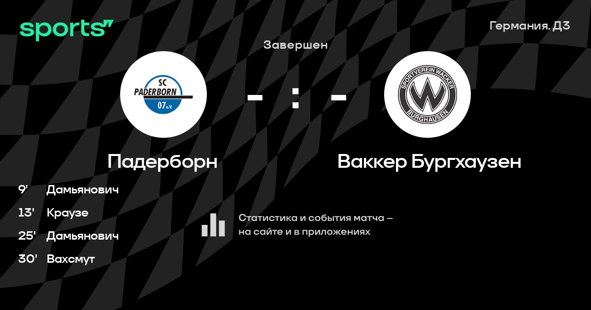 | 3 | Падерборн | 38 | 20 | 8 | 10 | 68 | 38 | +30 | 68 | ||