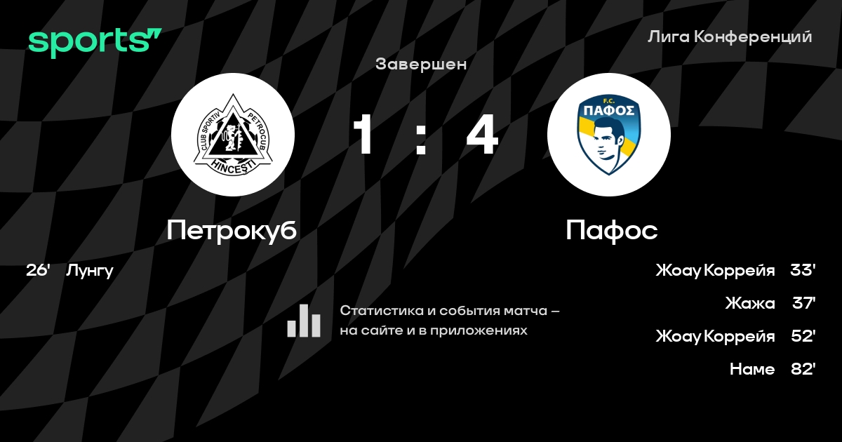 Результат прошлой игры в турнире «Лига Конференций»: Пафос – ЧФР 3:0. В последних 5 играх Пафос забивает 11 голов. В последних 5 играх Пафос пропускает 4 голов.