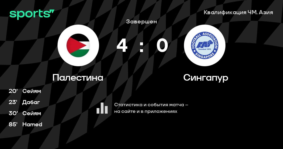 Палестина – Сингапур: Сингапур побеждает в 3 последних очных матчах в турнире «Квалификация ЧМ. Азия»