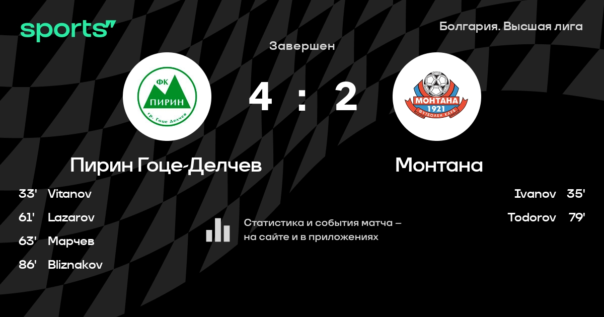 Пирин Гоце-Делчев – Монтана: коэффициенты