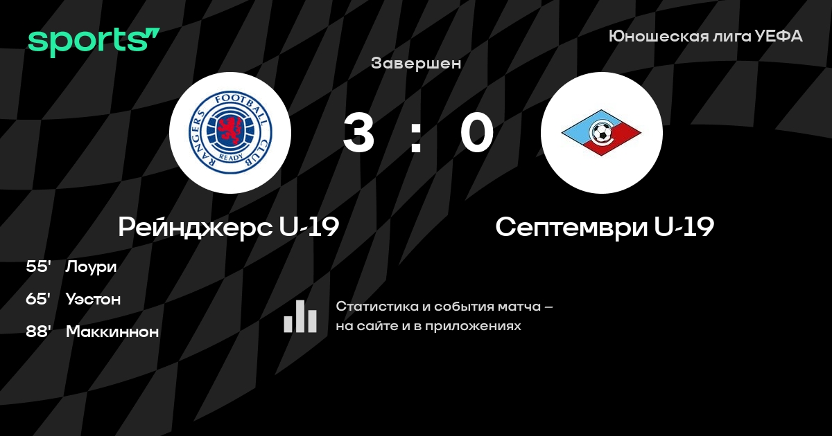 Рейнджерс U-19 – Септември U-19: коэффициенты