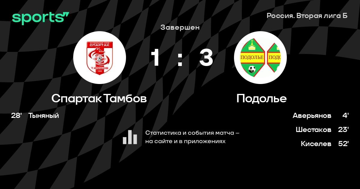 Спартак Тамбов – Подолье: коэффициенты