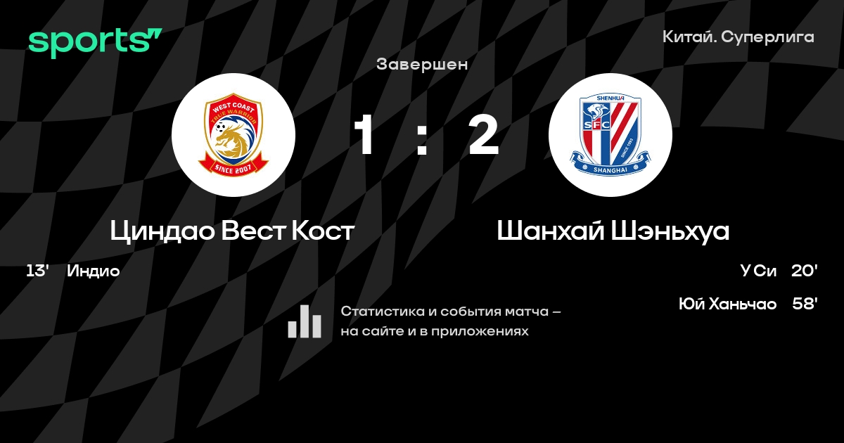 Циндао Вест Кост – Шанхай Шэньхуа: коэффициенты