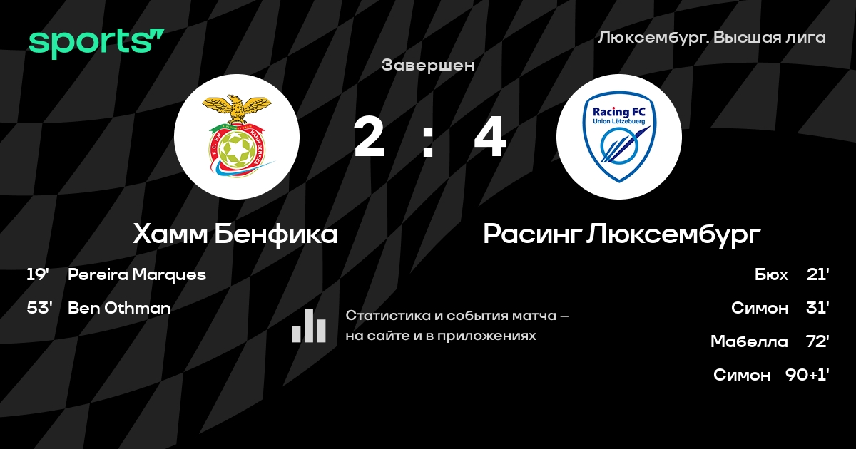 Хамм Бенфика – Расинг Люксембург: Расинг Люксембург побеждает в 3 последних очных матчах