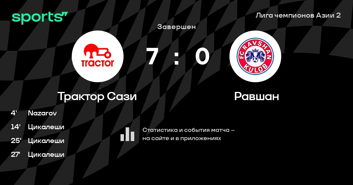 Результат прошлой игры в турнире «Лига чемпионов Азии 2»: Равшан – Трактор Сази 1:3. Лучший бомбардир команды – Амирхоссейн Хоссейнзаде: он забил 7 в 10 матчах. В последних 5 играх Трактор Сази забивает 9 голов. В последних 5 играх Трактор Сази пропускает 3 голов.