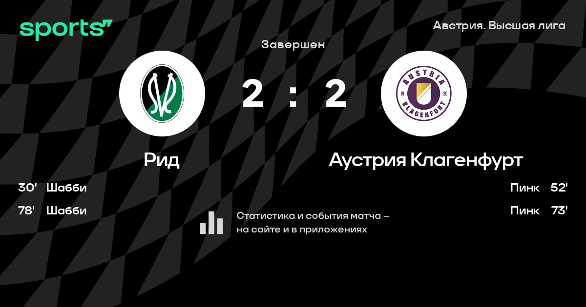 Рид – Аустрия Клагенфурт: Рид забивает в 6 из 8 последних матчей против этого соперника