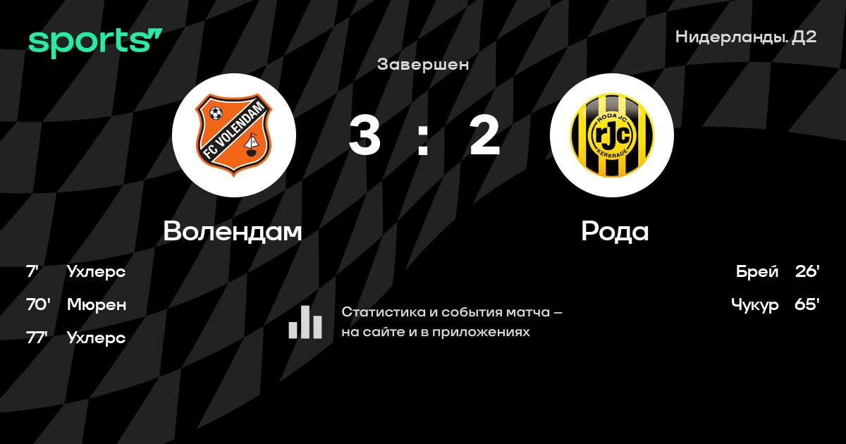 Волендам – Рода: Рода забивает в 6 последних матчах против этого соперника