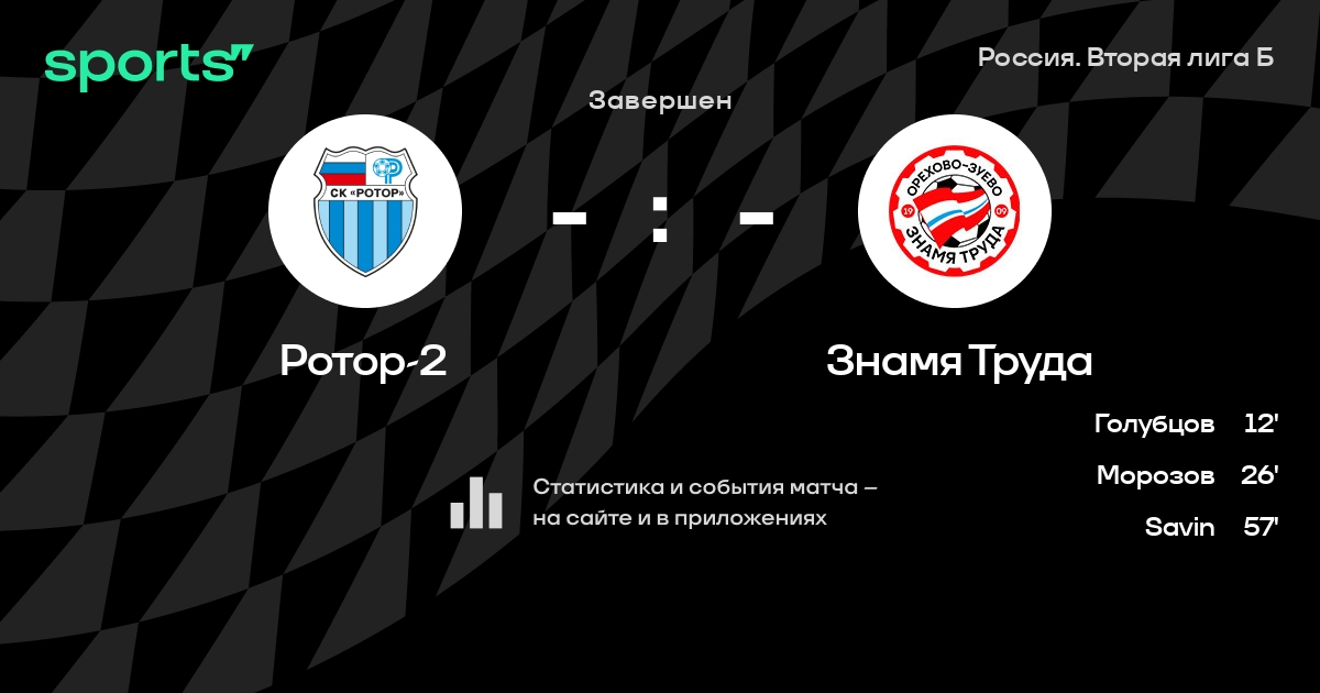 Результат прошлой игры в турнире «Вторая лига»: СКА-Хабаровск-2 – Ротор-2 2:1. После 25 туров Ротор-2 набирает 23 очков и занимает 12 место в турнире. Лучший бомбардир команды – Павел Трифонов: он забил 3 в 24 матчах. Ротор-2 не может выиграть в 5 последних матчах в рамках турнира «Вторая лига». Ротор-2 пропускает в 3 последних матчах в турнире «Вторая лига». В последних 5 играх Ротор-2 забивает 3 голов. В последних 5 играх Ротор-2 пропускает 7 голов.