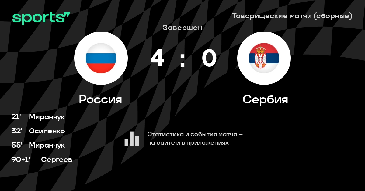 Тренды России перед Сербией: заходит ли низ, сколько сухих матчей, какой тайм лучше