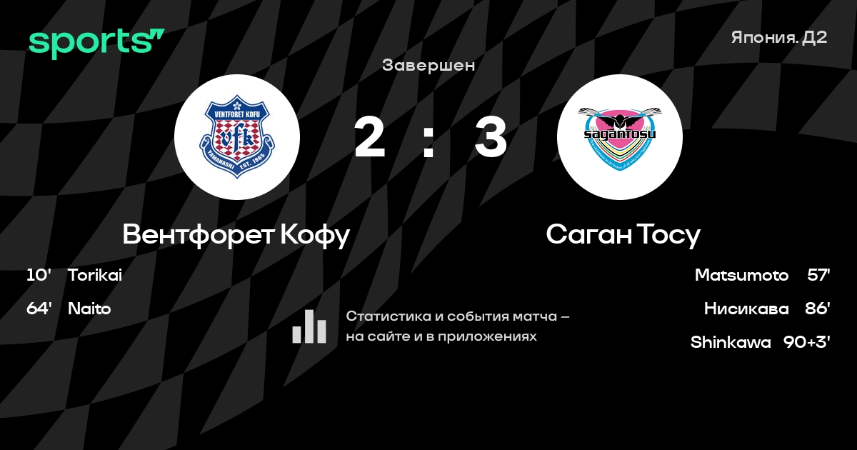Вентфорет Кофу – Саган Тосу: Саган Тосу не проигрывает в 6 из 8 последних матчей против этого соперника