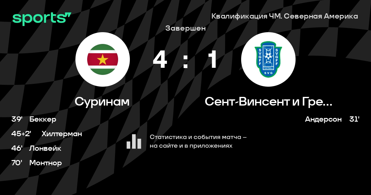 Трансляция Суринам - Сент-Винсент и Гренадины