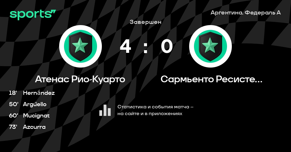 Трансляция Атенас Рио-Куарто - Сармьенто Ресистенсия