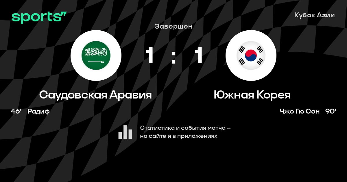 Саудовская Аравия – Южная Корея: Южная Корея не пропускает в 5 последних матчах против этого соперника