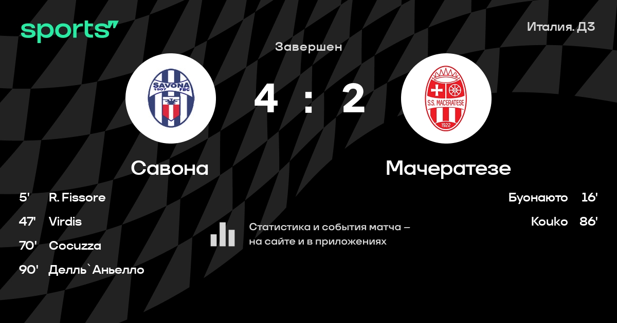Савона - Мачератезе: статистика матча