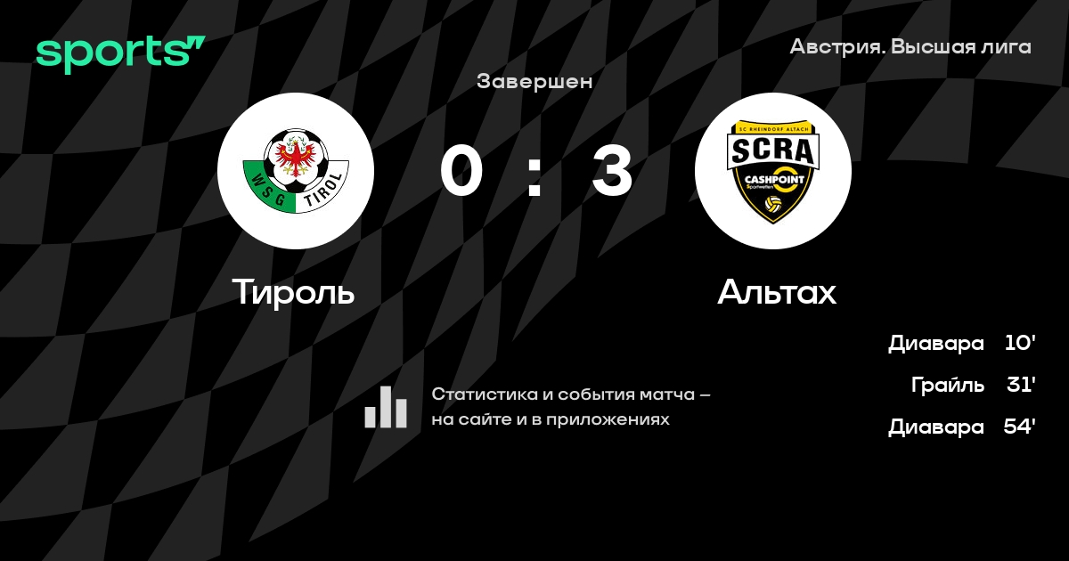 Результат прошлой игры в турнире «Бундеслига»: Штурм – Тироль 1:3. После 15 туров Тироль набирает 21 очков и занимает 9 место в турнире. Лучший бомбардир команды – Валентино Мюллер: он забил 9 в 18 матчах. Тироль не проигрывает в 6 последних матчах в рамках турнира «Бундеслига». В последних 5 играх Тироль забивает 7 голов. В последних 5 играх Тироль пропускает 4 голов.