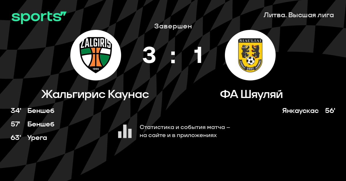 Жальгирис Каунас – ФА Шяуляй: ФА Шяуляй забивает в 11 из 13 последних матчей против этого соперника