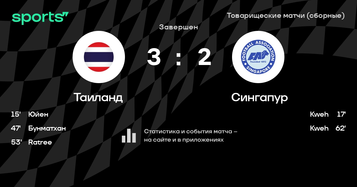 Товарищеский матч: шансы Таиланд – Сингапур победу в товарищеском матче
