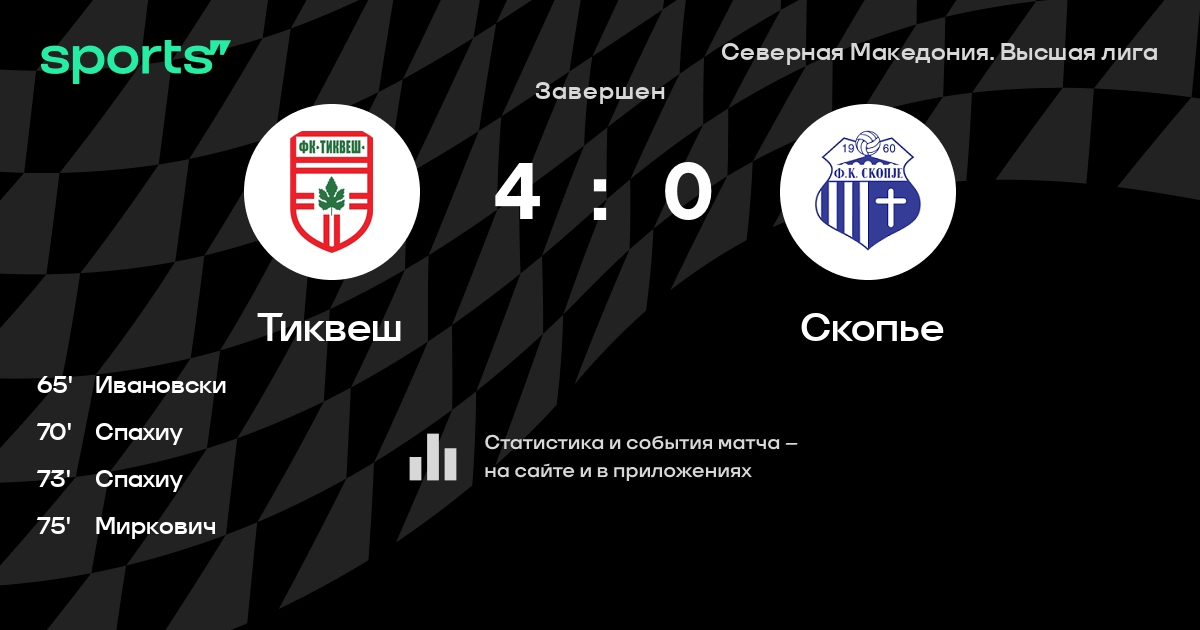 Тиквеш – Скопье: Тиквеш не проигрывает в 5 из 7 последних матчей против этого соперника в турнире «Высшая лига»