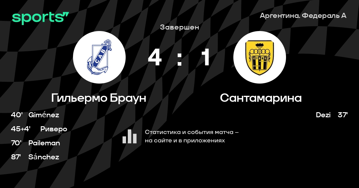 Гильермо Браун – Сантамарина: Сантамарина не проигрывает в 6 из 8 последних матчей против этого соперника в гостях