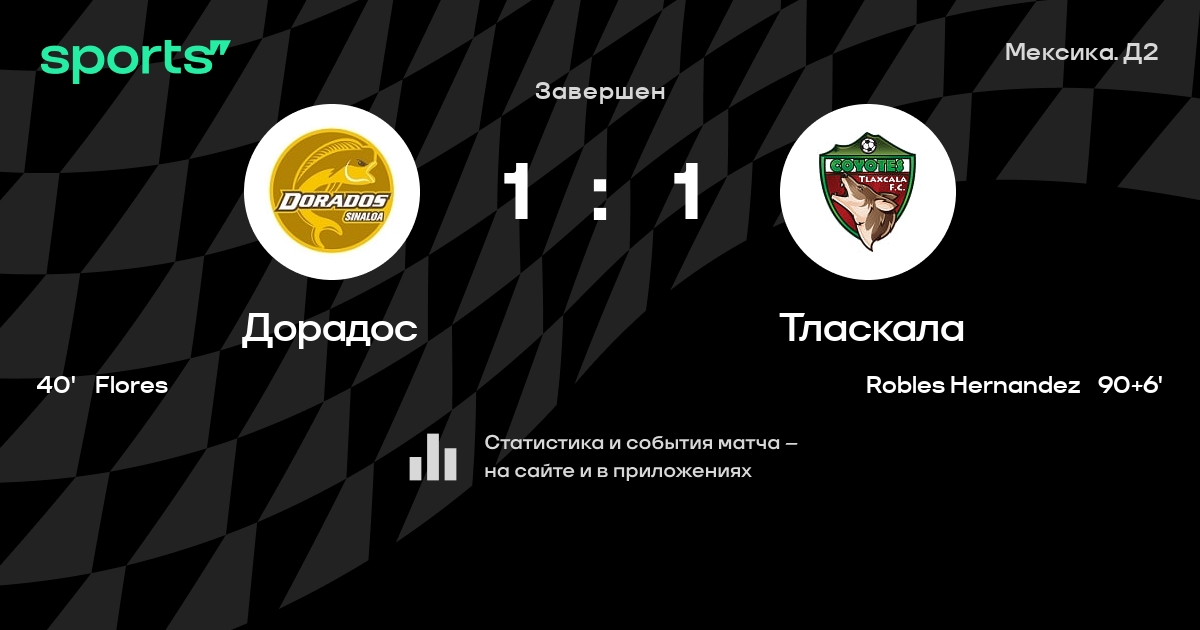 Результат прошлой игры в турнире «Первая лига»: Коррекаминос – Дорадос 1:0. Лучший бомбардир команды – C. Galicia: он забил 2 в 9 матчах. Дорадос не может выиграть в 9 последних матчах в рамках турнира «Первая лига». В 3 последних матчах в турнире «Первая лига» Дорадос обязательно забивает. В последних 5 играх Дорадос забивает 3 голов. В последних 5 играх Дорадос пропускает 8 голов.