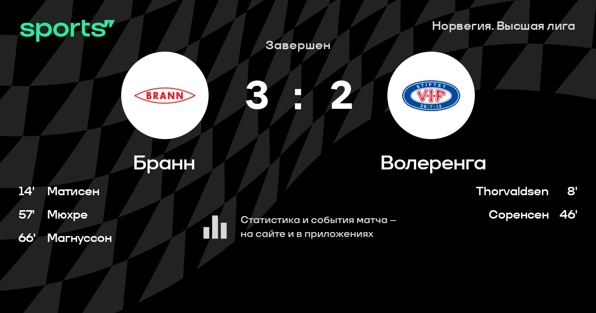 Бранн – Волеренга: Волеренга не проигрывает в 5 из 7 последних матчей против этого соперника в гостях в турнире «Высшая лига»