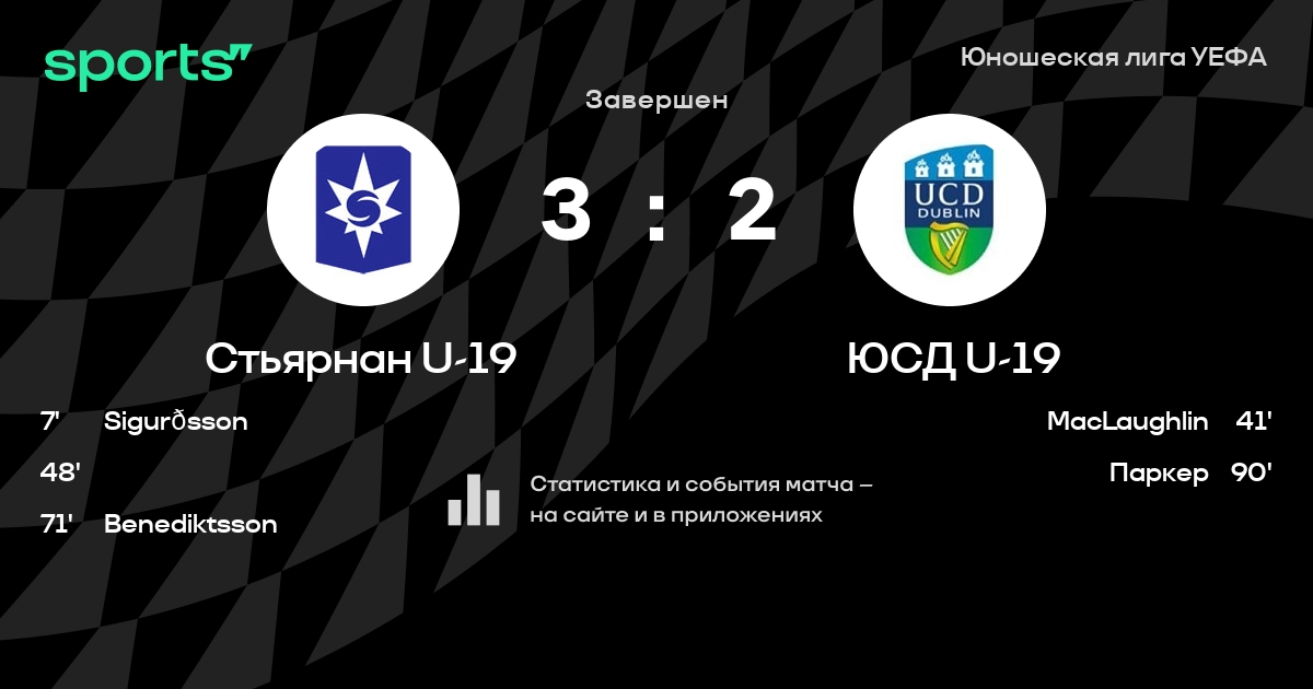 Стьярнан U-19 - ЮСД U-19: статистика матча