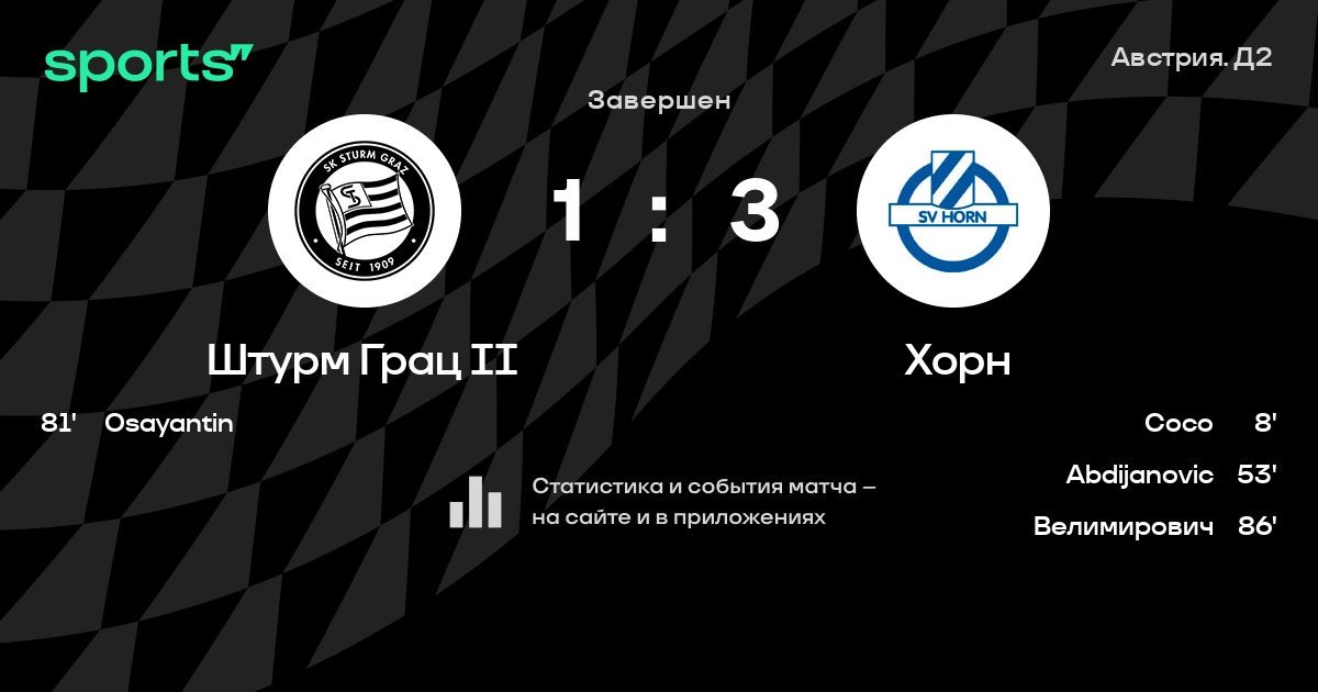 Штурм Грац II – Хорн: Хорн забивает в 5 последних матчах против этого соперника
