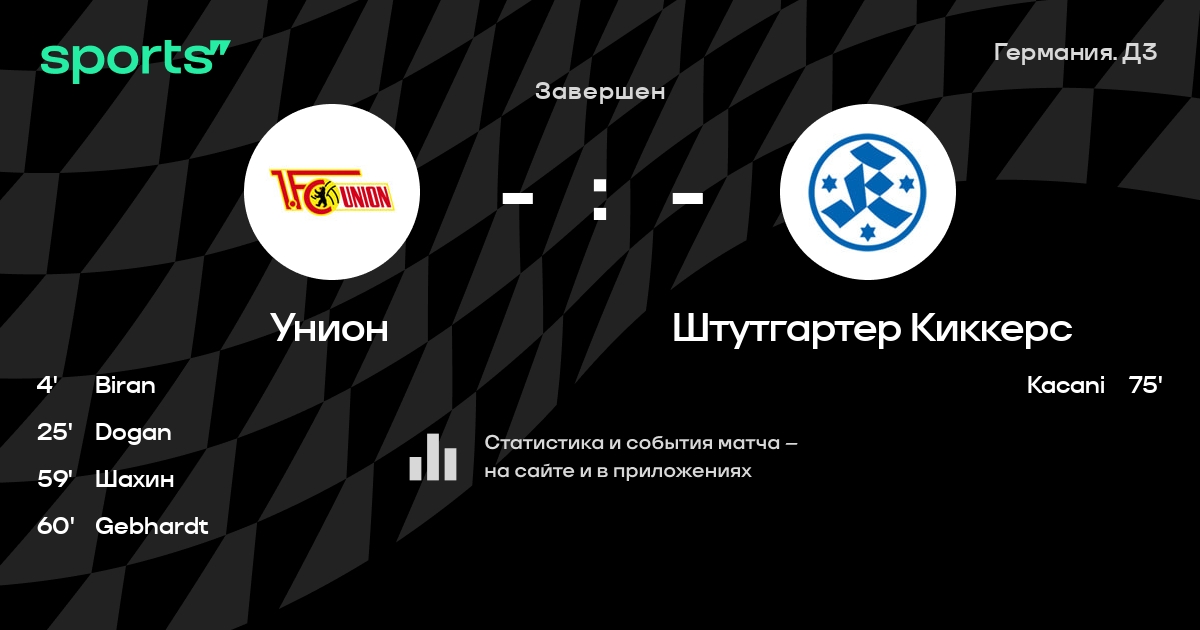 Унион Берлин - Штутгартер Киккерс: составы на матч