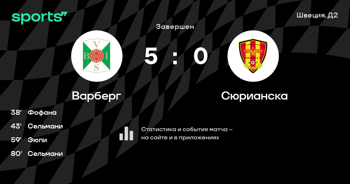 Стремберг - Фофана, Лийенбек, Карлссон, Линднер - Асаад, Эйер, Эюпи, Бок - Сельмани, БекайЗапасные: Свенссон, Модиг, Боман, Moller, Мунтер, Садику, Нетабай