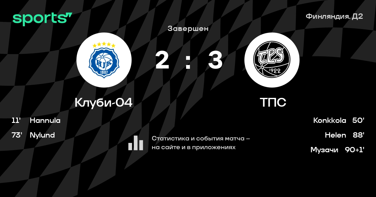 Результат прошлой игры в турнире «Первая лига»: Лахти – Клуби-04 2:2. После 21 туров Клуби-04 набирает 33 очков и занимает 4 место в турнире. Лучший бомбардир команды – K. Hardén: он забил 10 в 20 матчах. ТПС имеет в активе больше всех побед в турнире – 15. В последних 5 играх Клуби-04 забивает 7 голов. В последних 5 играх Клуби-04 пропускает 4 голов.