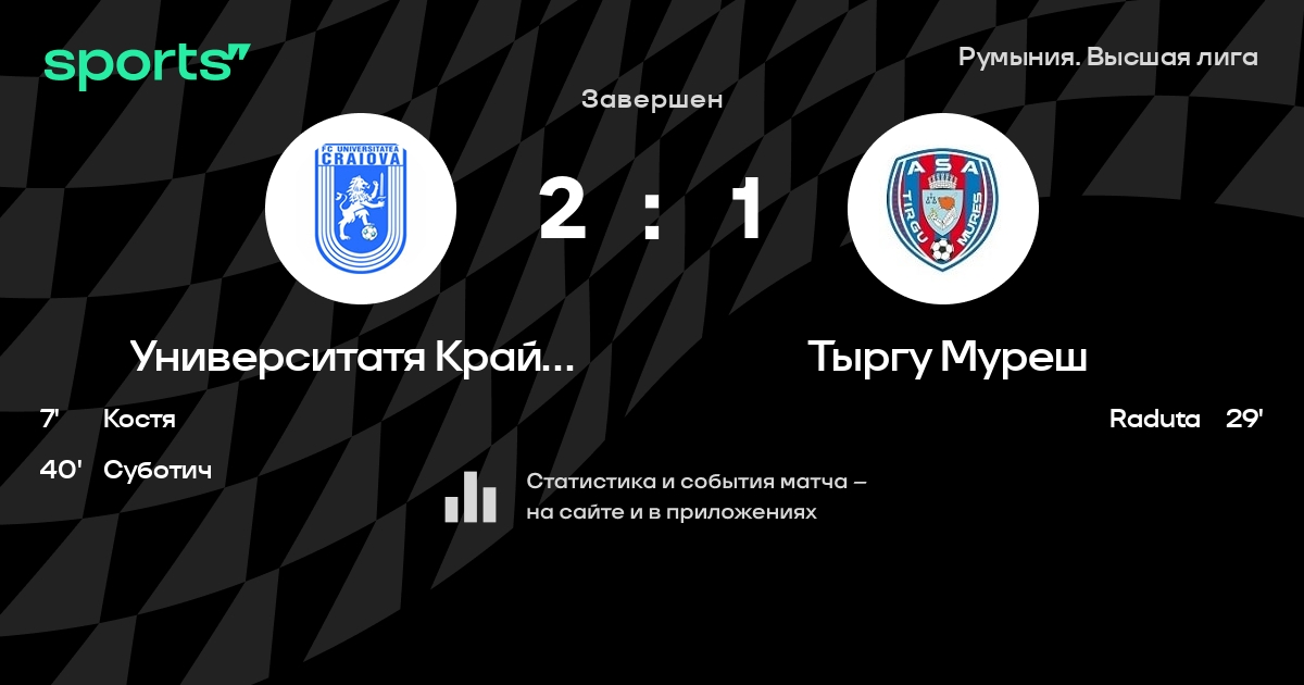Университатя Крайова - Тыргу Муреш: статистика матча