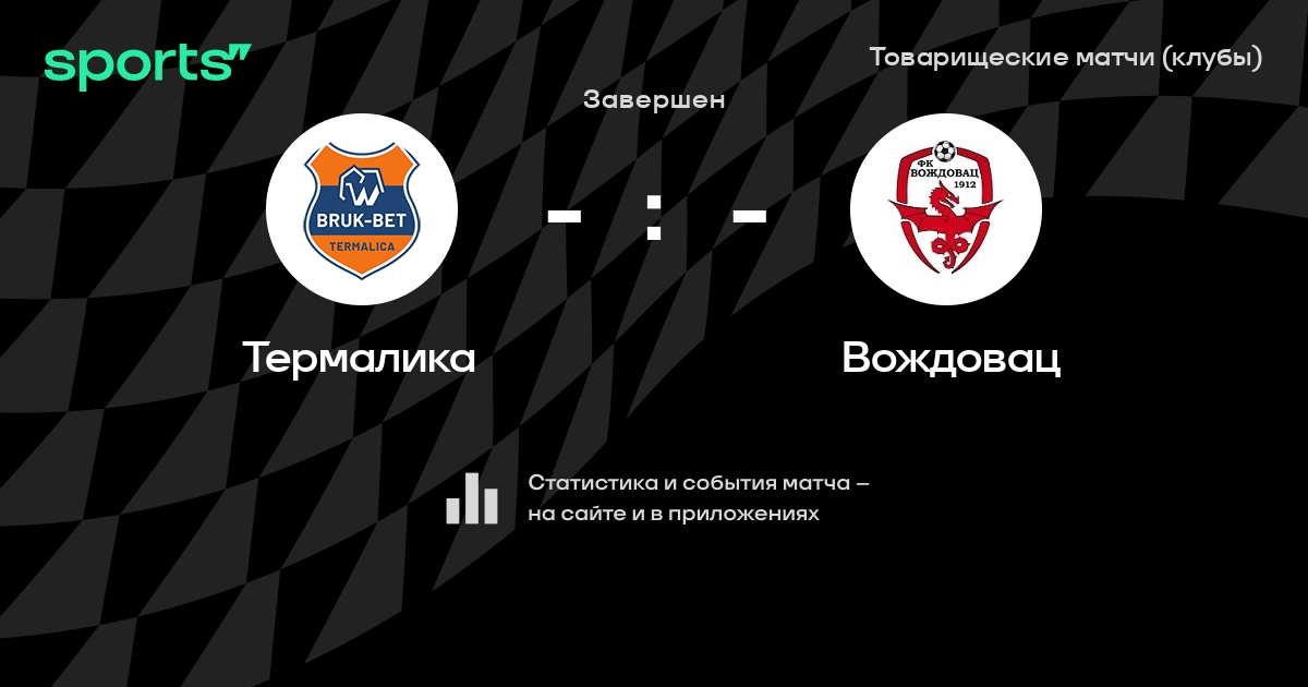Результат прошлой игры в турнире «Товарищеские матчи (клубы)»: Термалика – Канвон 1:2. Термалика проигрывает в 3 последних матчах в рамках турнира «Товарищеские матчи (клубы)». Термалика пропускает в 3 последних матчах в турнире «Товарищеские матчи (клубы)». В последних 5 играх Термалика забивает 10 голов. В последних 5 играх Термалика пропускает 5 голов.