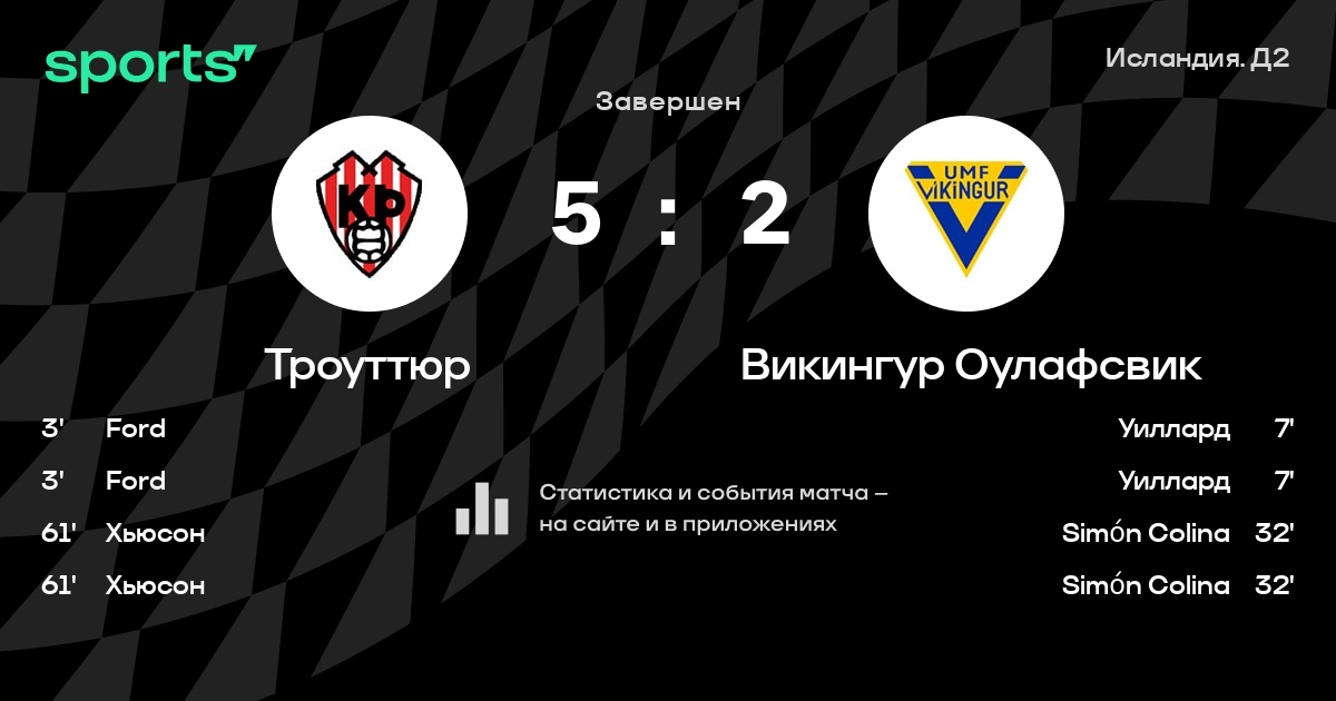 Ragnarsson - Keke, Хельгасон - Crnac, Теодоурссон, Barkarson, Vilhjalmsson, Colina, Ducó Baranzelli, Amat Domenech - УиллардЗапасные: Стейнарссон, Diau, Хафстейн, Leósson, Guðjónsson