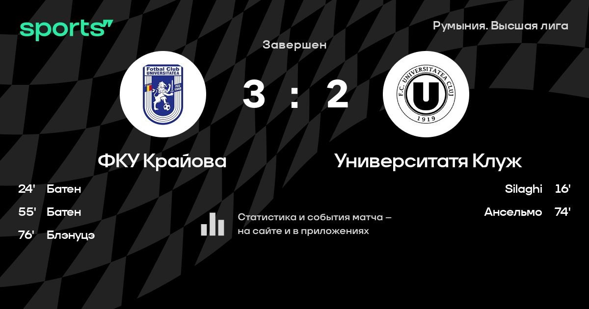 ФКУ Крайова - Университатя Клуж: статистика матча