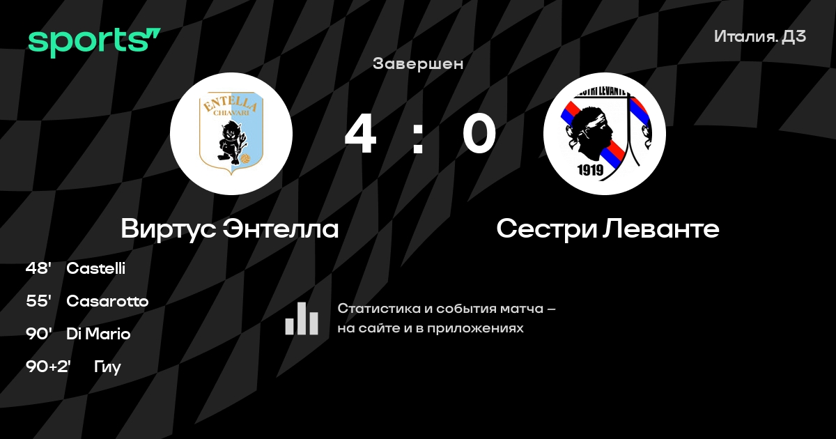 Виртус Энтелла - Сестри Леванте: статистика матча