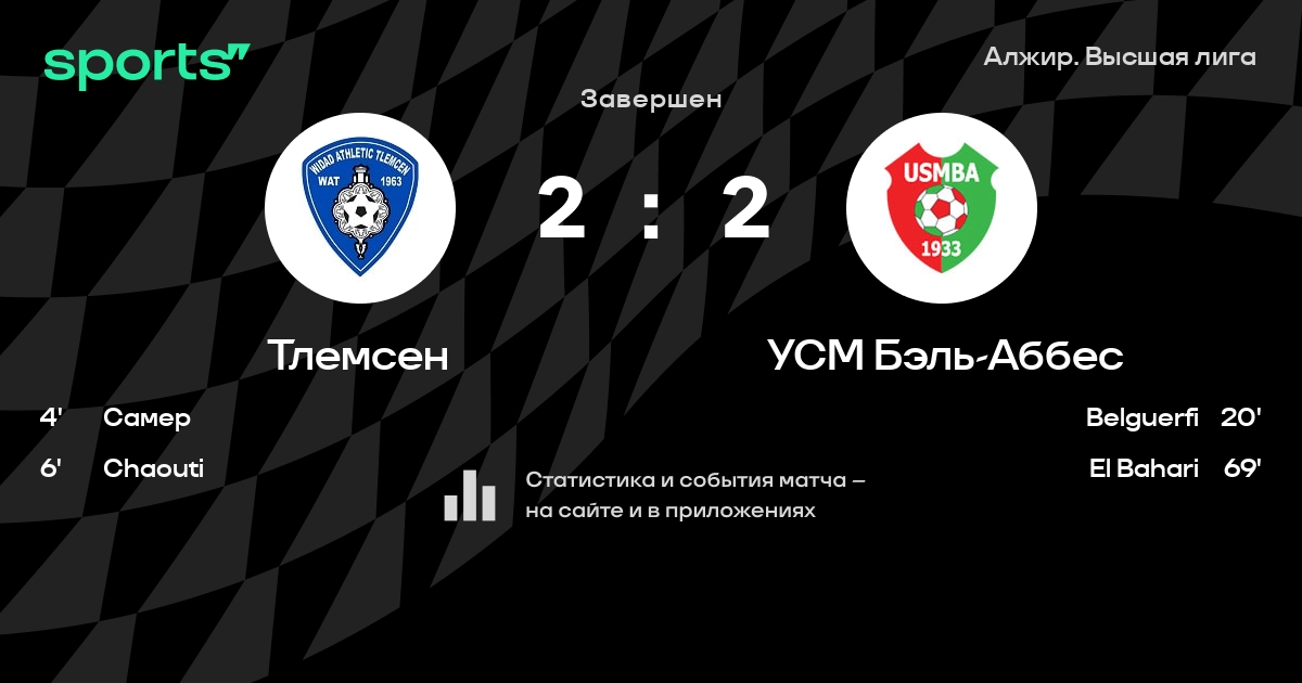 Тлемсен - УСМ Бэль-Аббес: составы на матч