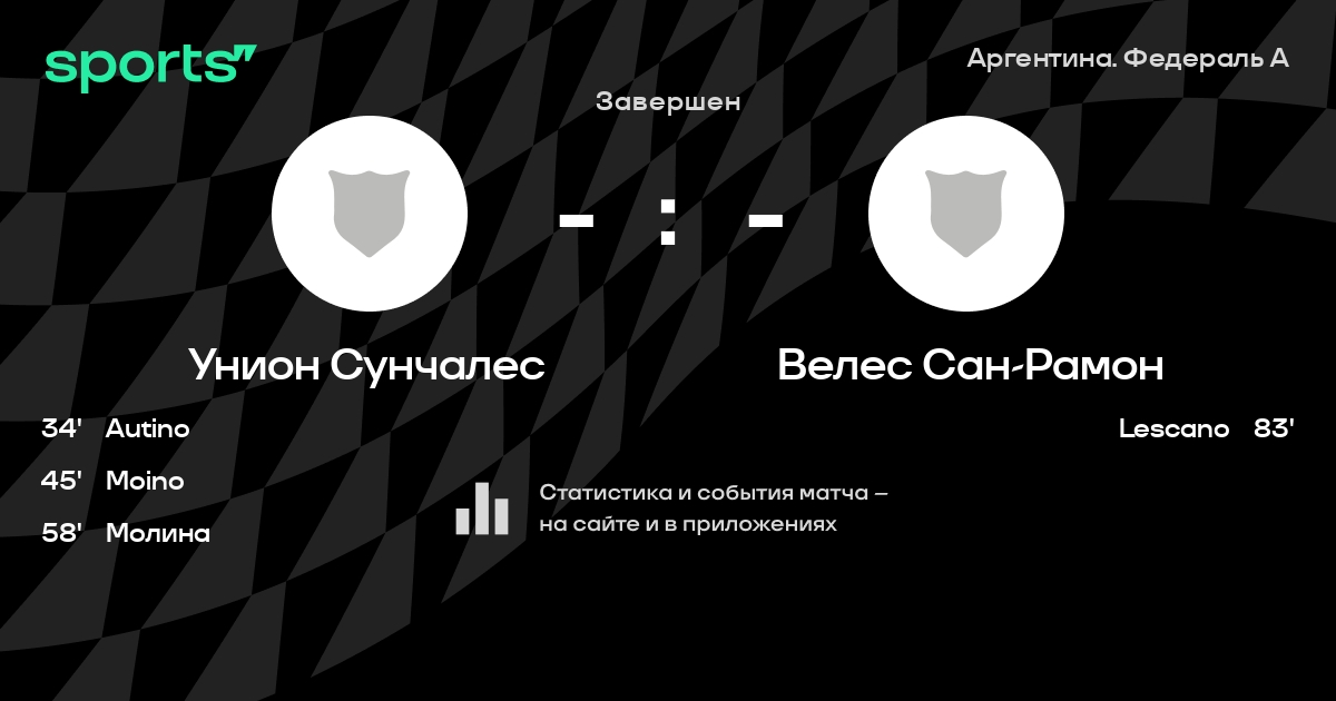Трансляция Унион Сунчалес - Велес Сан-Рамон