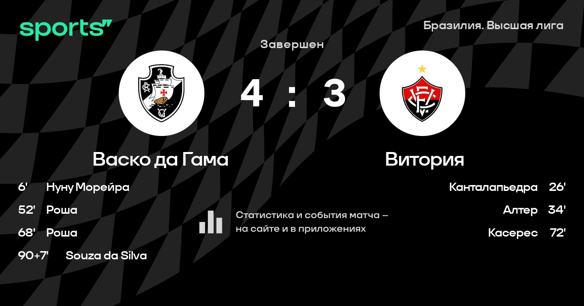 Результат прошлой игры в турнире «Серия A»: Палмейрас – Васко да Гама 3:0. После 26 туров Васко да Гама набирает 30 очков и занимает 13 место в турнире. Лучший бомбардир команды – Пабло Вехетти: он забил 18 в 40 матчах. В последних 5 играх Васко да Гама забивает 8 голов. В последних 5 играх Васко да Гама пропускает 7 голов.