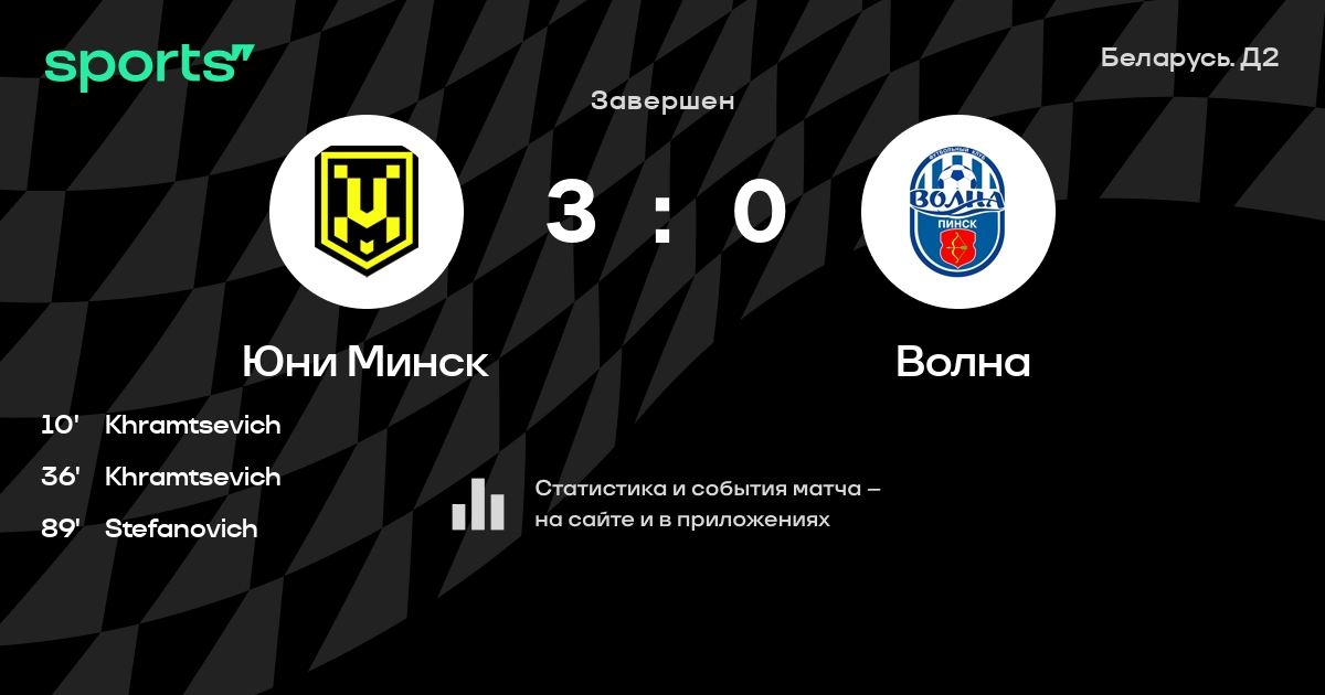 Результат прошлой игры в турнире «Первая лига»: Гомель-2 – Юни Минск 0:3. После 27 туров Юни Минск набирает 32 очков и занимает 12 место в турнире. Лучший бомбардир команды – A. Shishko: он забил 5 в 22 матчах. В последних 5 играх Юни Минск забивает 13 голов. В последних 5 играх Юни Минск пропускает 10 голов.