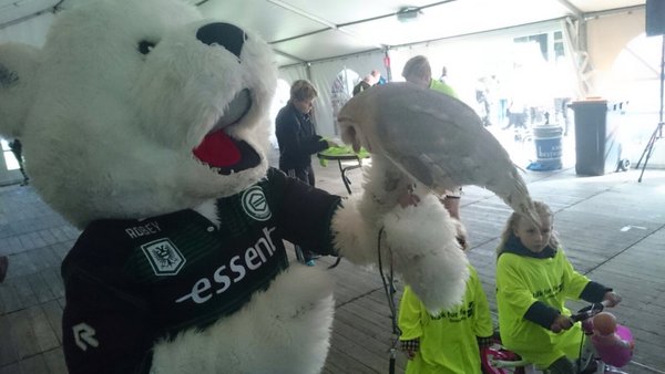 Медвежонок Гроуби, маскот "Гронингена", в рамках подготовки к акции Walk for Life познакомился с новым другом - совенком.