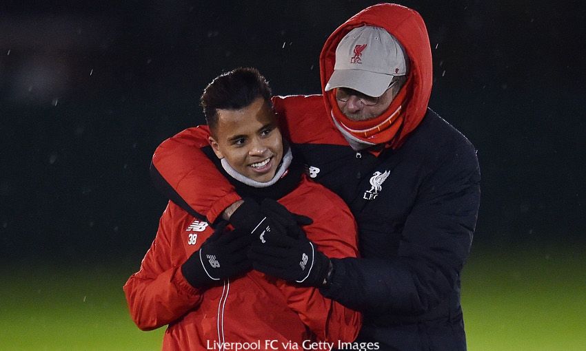 Опа! На сегодняшней тренировке #Аллан Родригес в объятиях Клоппа. #Ливерпуль и его вернул из аренды? Вроде только недавно читал, что его отправили набираться опыта и у него до сих пор нет рабочей визы.