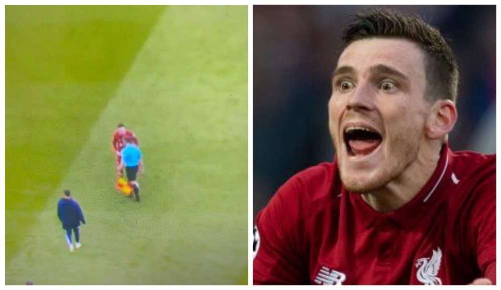 LFC 2020 / 📸 Попало в трансляцию: лайнсмен отмахнулся от Робертсона и локтем попал игроку в лицо