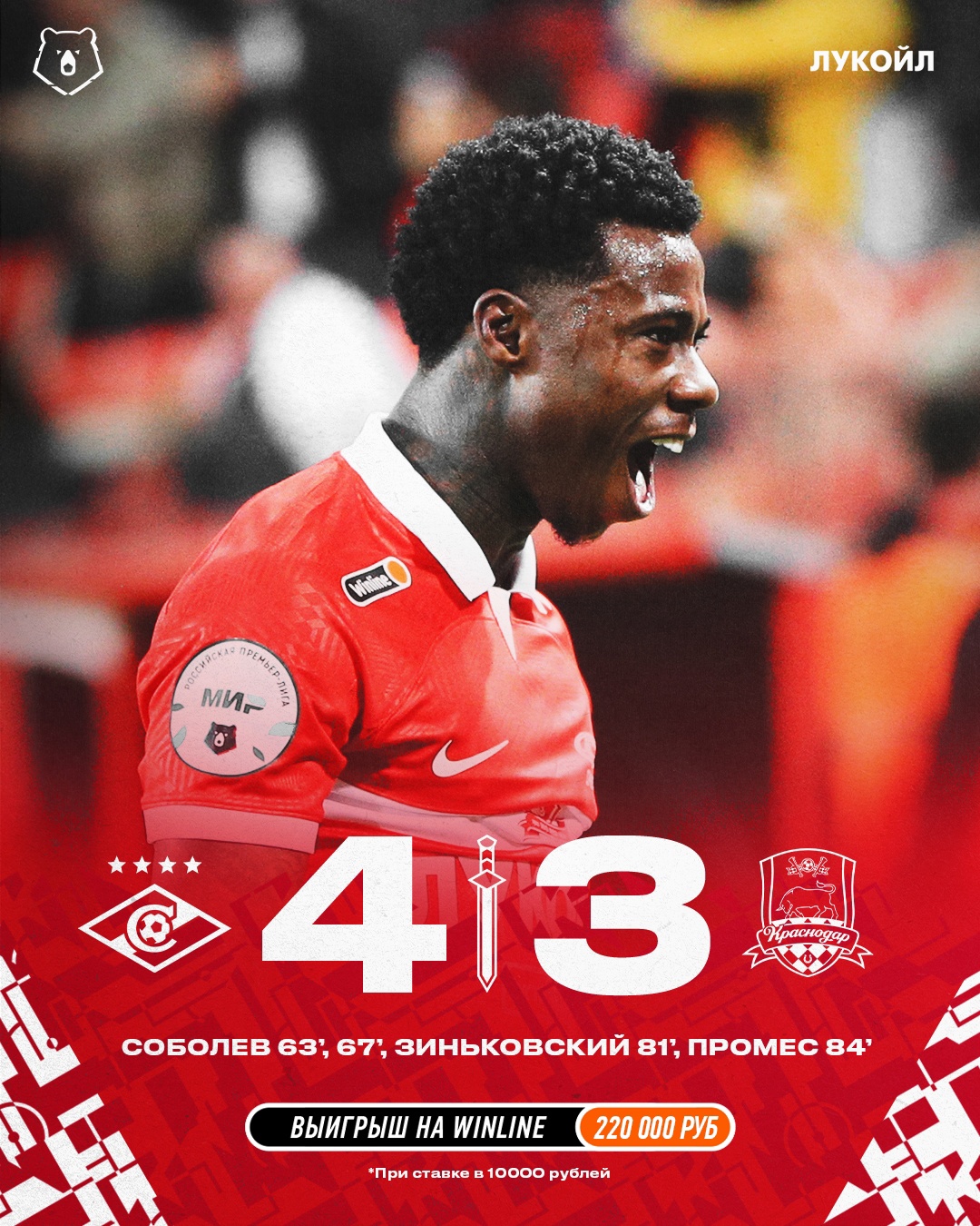 Спартак Онлайн / «Спартак» одержал волевую победу над «Краснодаром»