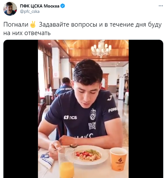 Полузащитник ЦСКА Бахтиер Зайнутдинов в течение дня будет отвечать на вопросы болельщиков.