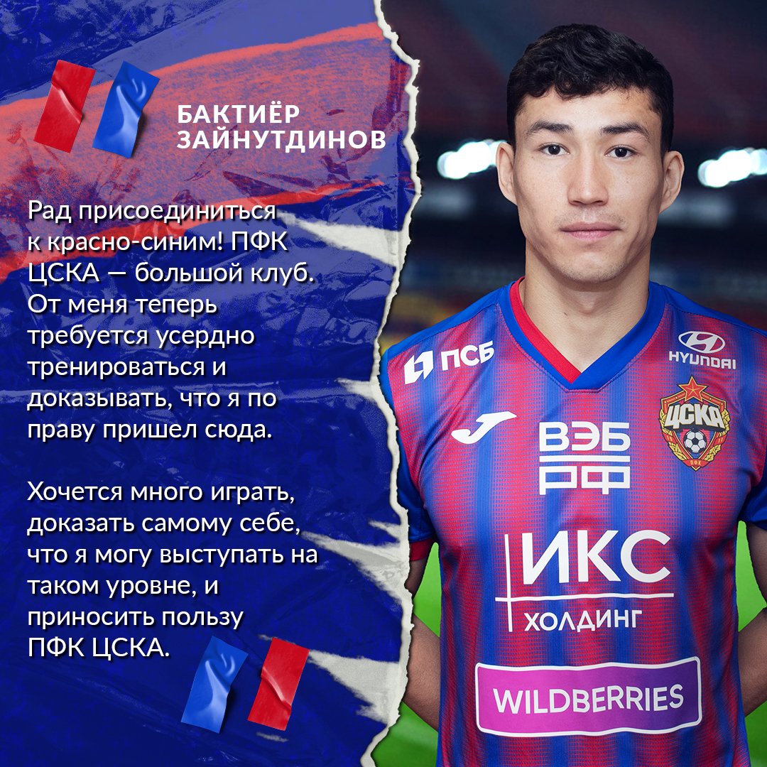 ЦСКА - Онлайн / Бактиёр Зайнутдинов: Хочется много играть и приносить пользу ЦСКА