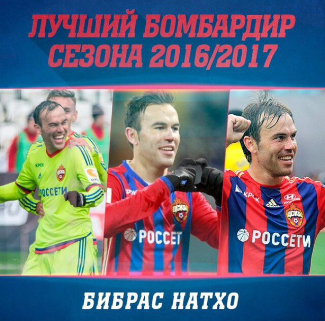 #Бибрас Натхо с 7 голами стал лучшим бомбардиром #ЦСКА в сезоне-2016/17
